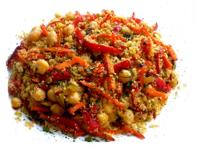 Se sirve el cuscús acompañado de las verduras y con el cilantro picado.