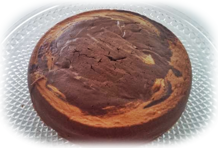 En la tortera primero echar la mezcla blanca y luego la mezcla de cacao o chocolate en el centro y unir un poco para que quede marmoleada